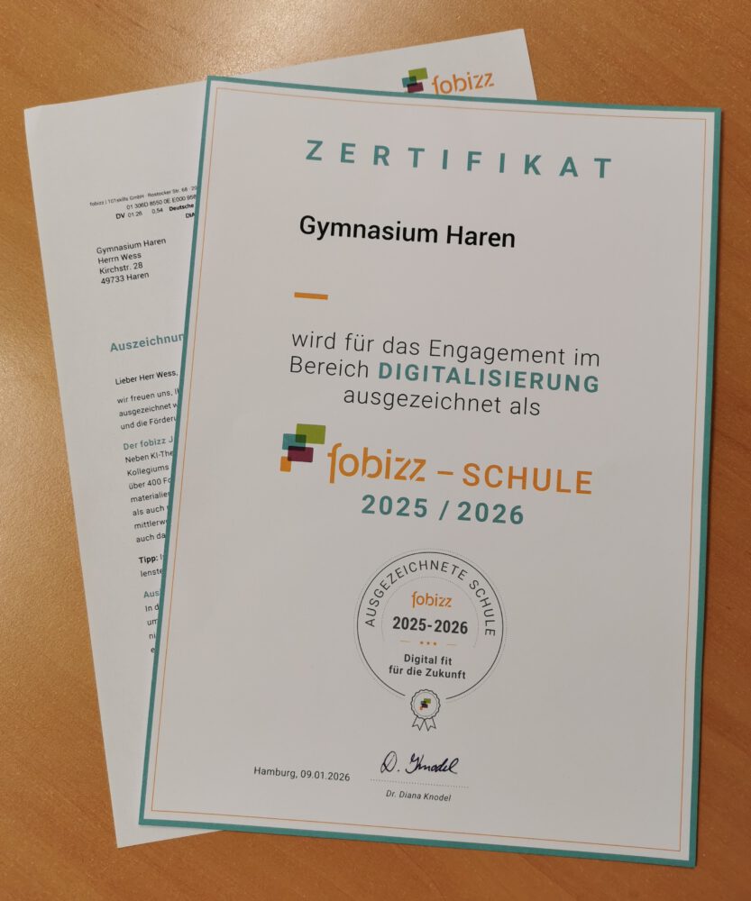 Gymnasium Haren erhält Auszeichnung als fobizz-Schule