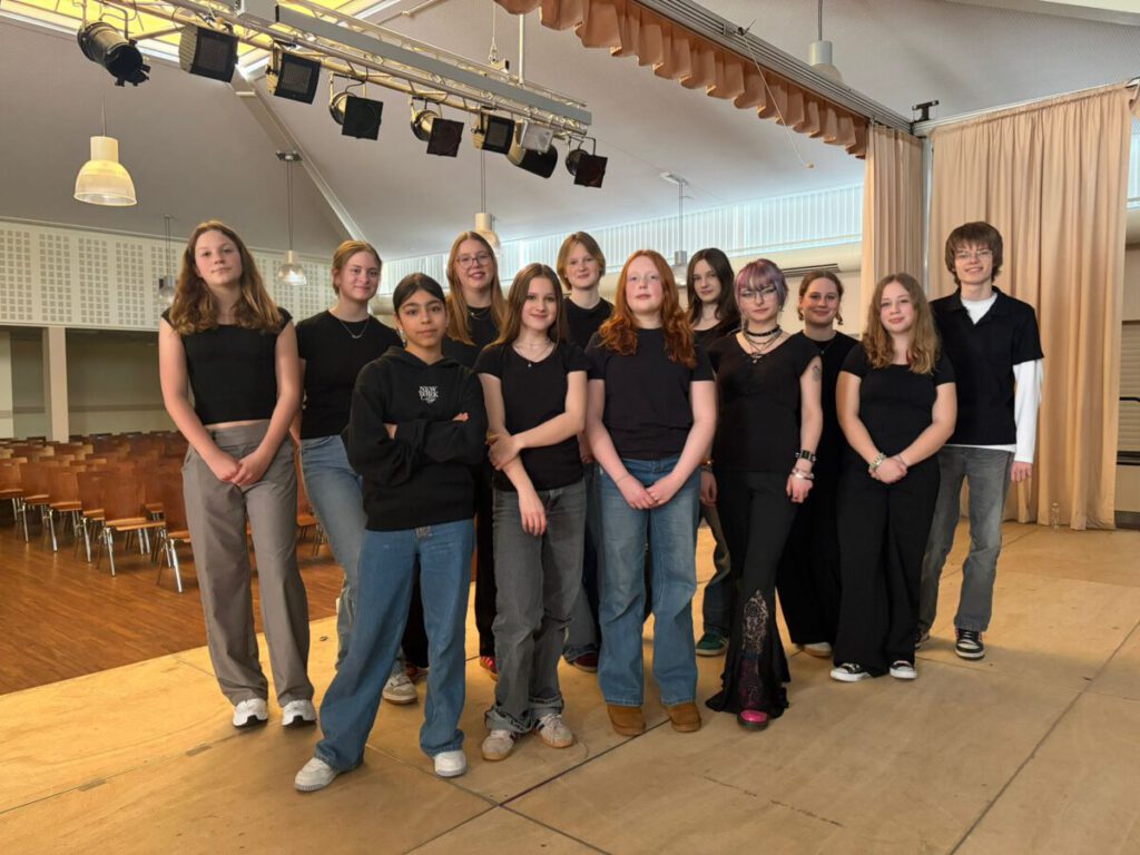 Die wöchentlichen Proben sind längst mehr als nur Theaterarbeit: Wenn sich die Gruppe freitags trifft, fühlt es sich oft wie ein Familientreffen an. Gemeinsam wird ausprobiert, gelacht, improvisiert, die Ereignisse der Woche besprochen – und natürlich intensiv an der Umsetzung des Stücks gearbeitet. Und manchmal vergessen wir auch die Zeit und wundern uns, dass es so still ist auf dem Schulgelände und das Wochenende vor der Tür steht…So wächst aus vielen kleinen Ideen nach und nach etwas Größeres: ein gemeinsames Theaterprojekt, das irgendwann den Weg von der Probe auf die Bühne finden soll.
