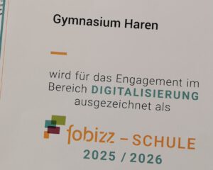 Unsere Schule wurde für das laufende Schuljahr 2025/2026 als fobizz Schule ausgezeichnet. Diese Anerkennung würdigt unser besonderes Engagement im Bereich der digitalen Bildung sowie die