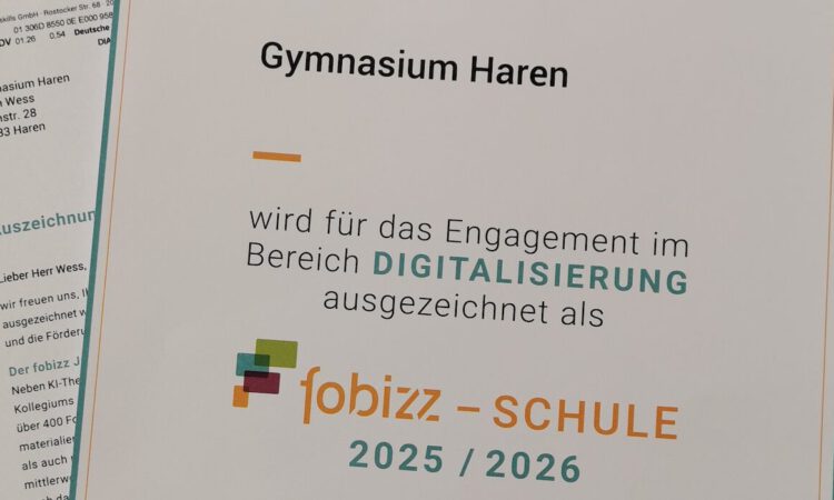 Unsere Schule wurde für das laufende Schuljahr 2025/2026 als fobizz Schule ausgezeichnet. Diese Anerkennung würdigt unser besonderes Engagement im Bereich
